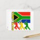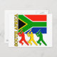 Tres jugadores de cricket de Silhouetted frente a la bandera sudafricana con el nombre de Sudáfrica en el costado.