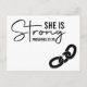 El empoderamiento cumple con la mínima elegancia en nuestra postal con una tipografía hecha a medida negra contra un telón de fondo blanco prístino, declarando 'Ella es fuerte- Proverbios 31:25', acompañados de cadenas rotas ilustradas. En la parte posterior, un diseño dividido ofrece un mensaje de "Te extrañamos" a la izquierda y un espacio de personalizable a la derecha. Perfecto para el alcance de la iglesia, recordatorios de membresía en gimnasio o contactos en equipo, esta versátil postal está lista para inspirar y reconectarse. Las herramientas de edición facilitan la conversión de la parte de atrás en un buzón de correo, optimizando sus esfuerzos de comunicación
