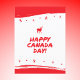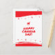 Celebra el espíritu de Canadá con esta audaz postal roja y blanca del Día de Canadá, que incluye una silueta festiva de ciervos rojos y juguetones asteriscos y puntos. El mensaje con letras a mano "¡Feliz Día de Canadá!" aparece en un fondo blanco limpio, enmarcado con bordes rústicos de pincelada. Este llamativo diseño le da un toque de diversión y encanto a sus saludos patrióticos. Perfecto para compartir deseos cálidos con la familia y los amigos o para decorar su espacio fiesta con un toque canadiense.