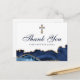 Postal Cruz cristiana azul marino dorada personalizada Ag