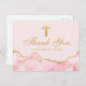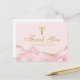 Elegante ágata rosa y dorada decora esta bonita tarjeta de agradecimiento personalizada para confirmación o bautizo para la celebración de una ceremonia cristiana para niñas. Personalice estas tarjetas con un nombre y su mensaje debajo de la hermosa cruz religiosa.
