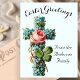 Postal Cruz Floral Azul Vintage Pascua Religiosa
