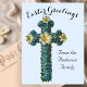 Postal Cruz Floral Azul Vintage Pascua Religiosa