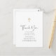 Este diseño simple y clásico se compone de tipografía serif y letra cursiva sobre un fondo blanco simple con una cruz dorada falsa.