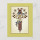 cruz vintage con flores azules y blancas bonitos y halo de diente de león alrededor de la cruz.