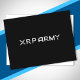 Diseño de memes criptográficos divertidos para los fans de la criptodivisa XRP que creen que XRP y el libro mayor XRP son el futuro de los sistemas de pago globales y de dinero que utilizan la tecnología blockchain. Presenta el diseño "Ejército XRP" en el diseño de estilo de logotipo XRP.
