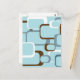 ¡Es de moda ser cuadrado! Hermoso diseño retro de cuadrados marrones, blancos y azules sobre un fondo azul claro en una postal