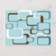 ¡Es de moda ser cuadrado! Hermoso diseño retro de cuadrados marrones, blancos y azules sobre un fondo azul claro en una postal