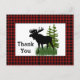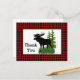 Esta tarjeta de agradecimiento presenta un diseño que atraerá tanto a hombres como a mujeres. El fondo de cuadro escocés rojo rústico es un buen contraste para la silueta del reno y el follaje. Compre esta postal con el saludo de "gracias" como se muestra o personalice con sus propias palabras.
