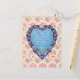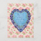 "Debe permitirme que le diga cuán fervientemente lo admiro y lo amo", cita famosa del señor Darcy cuando propone extrañar a Elizabeth Bennet, del Orgullo y Prejuicio de Jane Austen. Aquí en una tarjeta El día de San Valentín vintage con un corazón azul floral y violeta sobre un fondo floral rosa.