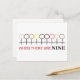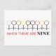 Ruth Bader Ginsburg, jueza de la Corte Suprema y célebre RBG, dijo en una entrevista con la Décima Conferencia de Circuito de Banca y Bar, "[W]cuando a veces me preguntan cuándo habrá suficientes [mujeres en la corte suprema]? Y yo digo ‘Cuando hay nueve’. La gente está conmocionada. Pero había nueve hombres, y nadie ha planteado una pregunta al respecto". Descripción del diseño: Las palabras "Cuando hay nueve" se centran debajo de una línea de nueve símbolos femeninos. Las palabras "Cuando hay" se muestran en rojo en una fuente sans serif. La palabra "nueve" es un poco más grande, en negro (para las túnicas negras de los jueces) y en una letra sérica. Los nueve símbolos femeninos están en una línea, con cada otra línea horizontal en el desvío del símbolo, por lo que no forman una línea recta. Los óvalos de los símbolos femeninos son de 9 colores diferentes, simbolizando todo tipo de mujeres. De plata de izquierda a derecha (para las mujeres mayores), marrón oscuro, marrón claro, amarillo, negro, marrón rojo, rosa (para las mujeres LGBTQ), tazas claras y marrón medio. Las líneas verticales y horizontales de los símbolos femeninos son negras para significar el negro de las túnicas de la Corte Suprema de los jueces.