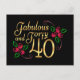 Cuarenta y fabulosas Tarjeta postal de cumpleaños de mujer con oro y negro con Rosas Rojas. Personaliza el mensaje con el nombre del destinatario y cualquier otra cosa que te gustaría escribir.