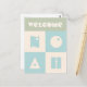 Tarjeta de felicitación con el nombre del bebé de cuatro letras para un recién nacido y sus padres en tonos beige verde azul pastel claro neutro. Las 4 letras son personalizables ajustándose al nombre de los niños. Las letras se eligen con un tipográfico tierno para que parezca chillmente figurativo. Los colores se pueden editar según el deseo individual.