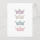 Cuatro coronas de colores pastel alineadas verticalmente, una rosa, una verde, una violeta y otra blanca. El fondo es blanco.