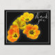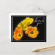 Impresionante fotografía en primer plano de cuatro tulipanes amarillos y naranjas sobre un fondo negro. Las flores cubren la parte delantera de esta tarjeta postal floral en blanco que se puede utilizar como tarjeta de agradecimiento, tarjeta de cumpleaños o cualquier otra tarjeta de su elección. ¡Personalízala con tu texto y/o imágenes para hacerla única!
