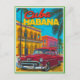 Este vibrante arte de viajes de estilo retro capta el icónico espíritu de La Habana, Cuba. El diseño cuenta con un impresionante auto americano vintage de color rojo cerezo —un verdadero símbolo de la ciudad— estacionado en el marco de la colorida arquitectura colonial de la ciudad vieja. Las palmeras descienden bajo un brillante cielo azul, enmarcando el atrevido y estilizado texto de "Cuba HABANA." Con su rica paleta soleada y su nostalgia, este poster encarna perfectamente la energía y el encanto atemporal de la capital cubana.