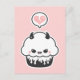 Una linda tarta malvada con llamas y una burbuja de sueños de corazón roto.