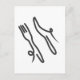 Postal Cuchillo alimenticio y tenedor moderno gris y blan