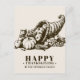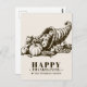 Celebrar el Día de Acción de Gracias este año con esta única postal. Cuenta con un ilustracion de estilo vintage con un cuerno lleno de frutas y verduras. Un símbolo clásico de una fiesta de Acción de Gracias. Se sitúa en un fondo de color marrón marrón análogo a los detalles del ilustracion. Además, recuerde que también puede utilizar la transferencia de esta función de diseño para transferir este elemento a más de 500 productos diferentes. Dicho esto, disfruta de ser creativo y hacerlo propio.