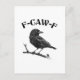 Esta es una ilustración monocromática creada profesionalmente que presenta un cuervo posado en una rama de árbol, representada con una textura de semitono distintiva para evocar una estética vintage. Posicionado de manera prominente sobre el ave está el texto estilizado y en negrita "F-CAW-F", que ofrece un giro humorístico que complementa el ambiente gótico y potencialmente espeluznante o con temática de Halloween del cuervo. La composición general combina elementos oscuros de estilo de tatuaje vintage con diseño gráfico retro.