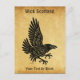 Una simple imagen tipo silueta de un cuervo animado (Corvus corax), hecho al estilo Nórdico/Celta, superpuesto en una imagen de fondo de papel viejo, dándole un ambiente medieval. Texto personalizable que dice "Wick Escocia" aparece en la parte superior. Puedes personalizar aún más agregando texto adicional en la parte inferior.