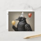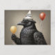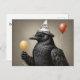 Postal Cuervo sosteniendo globo amarillo sombrero feliz c