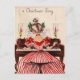 Festiva y divertida, esta postal es la manera perfecta de enviar los mejores deseos de vacaciones a amigos y familiares de estos Navidades. Presenta un diseño vintage y retro de una chica tocando el piano con un agujero en su cabello. Feliz Navidad!