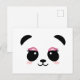 Panda lindo con pestañas rosas postal. Cara de oso panda blanco y negro kawaii con pestañas rosadas de moda.