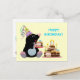 personalizado macho sosteniendo un pedazo de torta de cumpleaños. Feliz cumpleaños.ilustracion infantil