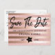Anuncia la próxima fiesta de cumpleaños número 18 con este elegante "Cumpleaños 18 - Salva la Fecha". Dos tendencias de color muy populares y brillo mezclados crean una tarjeta postal moderna, lujosa y elegante. Esta tarjeta de "salva la fecha" moderna y trendy cuenta con una mezcla de brillo dorado rosa y rayas de lámina rosa.
