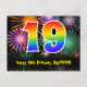 Postal Cumpleaños 19 - Patrón Divertido de Fuegos Artific