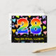 El frente de este diseño de tarjeta postal temática de cumpleaños, amoroso, colorido y emocionante, presenta un gran número "28" con un patrón inspirado en el gradiente del espectro del arcoíris, junto con el mensaje "Feliz cumpleaños 28", y un nombre de destinatario personalizado. El frente tiene además un vibrante y colorido patrón de fondo con formas de corazón amorosas. La parte trasera presenta un mensaje de saludo de cumpleaños editable, o quizás podría ser borrado y dejado en blanco si se desea escribir un mensaje a mano en su lugar. Una tarjeta postal de cumpleaños personalizada como esta podría ser una forma divertida de enviar un mensaje para celebrar el cumpleaños número veintiocho de alguien. Tarjetas postales como esta también podrían ser utilizadas para invitar a los invitados a una fiesta de cumpleaños que se celebra para alguien que está cumpliendo 28 años. [~Z0000448]