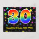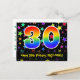 El frente de este diseño de tarjeta postal temática de cumpleaños emocionante, colorido y divertido presenta un gran número "30" con un patrón inspirado en el gradiente del espectro del arcoíris, junto con el mensaje "Feliz cumpleaños 30", y un nombre de destinatario personalizado. La parte delantera presenta además un fondo colorido y vibrante con un patrón de formas de estrellas. La parte trasera presenta un mensaje de felicitación de cumpleaños editable, o quizás podría borrarse y dejarse en blanco si se desea escribir un mensaje a mano en su lugar. Una tarjeta postal de cumpleaños personalizada como esta podría ser una forma divertida de reconocer el cumpleaños número treinta de alguien. Tarjetas postales como esta también podrían usarse para invitar a invitados a una fiesta de cumpleaños o celebración que se organice para alguien que cumple 30 años.
