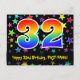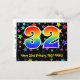 El frente de este divertido, colorido y emocionante diseño de tarjeta postal temática de cumpleaños presenta un gran número "32" con un patrón inspirado en gradiente de espectro de arcoíris. También presenta el mensaje "Feliz cumpleaños 32" y un nombre de destinatario personalizado. La parte delantera también cuenta con un patrón de fondo colorido y vibrante con formas de estrellas de diferentes tamaños. La parte posterior presenta un mensaje de saludo de cumpleaños personalizado, o quizás podría estar en blanco si se desea escribir un mensaje a mano en su lugar. Una tarjeta postal de cumpleaños personalizable como esta podría ser una forma divertida de celebrar el cumpleaños número treinta y dos de alguien. Tarjetas postales como esta también podrían ser utilizadas para invitar a los invitados a una fiesta de cumpleaños que se celebra para alguien que está cumpliendo 32 años.