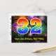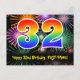 Postal Cumpleaños 32 - Patrón Divertido de Fuegos Artific