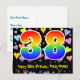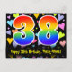 El frente de este emocionante, colorido y afectuoso diseño de tarjeta postal temática de cumpleaños presenta un gran número "38" con un patrón de gradiente de espectro de arcoíris, junto con el mensaje "Feliz cumpleaños 38", y un nombre de destinatario personalizable. La parte delantera tiene además un vibrante y colorido patrón de fondo de corazones amorosos. La parte trasera incluye un mensaje de saludo de cumpleaños personalizado, o quizás podría estar en blanco si se desea escribir un mensaje a mano. Una tarjeta postal de cumpleaños personalizable como esta podría ser una forma divertida de enviar un mensaje para celebrar el cumpleaños número treinta y ocho de alguien. Tarjetas postales como esta también podrían usarse para invitar a los invitados a una fiesta de cumpleaños que se celebra para alguien que cumple 38 años. [~Z0000448]