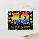 El frente de este divertido, afectuoso y colorido diseño de tarjeta postal de cumpleaños presenta un gran número "40" con un patrón inspirado en gradiente de espectro de arcoíris. También presenta el mensaje "Feliz cumpleaños 40" y un nombre de destinatario personalizado. La parte delantera también tiene un patrón de fondo colorido y vibrante con corazones afectuosos de diferentes tamaños. La parte trasera presenta un mensaje de saludo de cumpleaños personalizado, o quizás podría estar en blanco si se desea escribir un mensaje a mano. Una tarjeta postal de cumpleaños personalizable como esta podría ser una forma divertida de reconocer el cumpleaños número cuarenta de alguien. Las tarjetas postales como esta también podrían usarse para invitar a los invitados a una fiesta de cumpleaños o celebración que se organice para alguien que cumple 40 años.