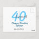 Postal cumpleaños 40 y renovado nombre fecha azul negrita