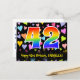 El frente de este divertido diseño de tarjeta postal temática de cumpleaños, colorido y afectuoso, presenta un gran número "42" con un patrón inspirado en el gradiente del espectro del arcoíris, junto con el mensaje "Feliz cumpleaños 42" y un nombre de destinatario personalizable. La parte delantera tiene además un vibrante y colorido patrón de fondo de corazones afectuosos. La parte trasera presenta un mensaje de saludo de cumpleaños personalizado, o quizás podría estar en blanco si se desea escribir un mensaje a mano. Una tarjeta postal de cumpleaños personalizada como esta podría ser una forma divertida de reconocer el cumpleaños número cuarenta y dos de alguien. Tarjetas postales como esta también podrían usarse para invitar a los invitados a una celebración de cumpleaños o fiesta que se organice para alguien que cumple 42 años.
