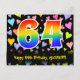 El frente de este divertido, amoroso y colorido diseño de tarjeta postal de cumpleaños presenta un gran número "64" con un patrón de gradiente de espectro de arcoíris. También presenta el mensaje "Feliz cumpleaños 64" y un nombre de destinatario personalizable. La parte delantera también tiene un patrón de fondo de formas de corazón amorosas coloridas y vibrantes. La parte trasera presenta un mensaje de saludo de cumpleaños personalizable, o quizás podría estar en blanco si se desea escribir un mensaje a mano. Una tarjeta postal de cumpleaños personalizada como esta podría ser una forma divertida de celebrar el cumpleaños número sesenta y cuatro de alguien. Tarjetas postales como esta también podrían utilizarse para invitar a los invitados a una fiesta de cumpleaños o celebración que se organice para alguien que está cumpliendo 64 años. [~Z0000448]
