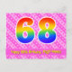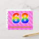 El frente de este diseño de tarjeta postal temática de cumpleaños amoroso, animado y divertido presenta un gran número "68" con un patrón de gradiente de espectro de arcoíris, junto con el mensaje "Feliz cumpleaños 68", y un nombre de destinatario personalizable. El frente presenta adicionalmente un patrón alegre de rayas rosadas claras y rosadas oscuras con formas de corazón. La parte trasera presenta un mensaje de saludo de cumpleaños personalizado, o quizás podría estar en blanco si se desea escribir un mensaje a mano. Una tarjeta postal de cumpleaños personalizable como esta podría ser una forma divertida de celebrar el cumpleaños número sesenta y ocho de alguien. Tarjetas postales como esta también podrían usarse para invitar a invitados a una celebración de cumpleaños que se celebra para alguien que cumple 68 años. [~Z0000449]