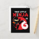 Este diseño de tema de fiesta de cumpleaños de niños ninja es perfecto para su pequeño ninja cumpleañero que cumple 6 años. Ideal para niños y niñas de 6 años que les gustan los ninjas, karate, taekwondo, judo u otros artes marciales. Cuenta con 'Este Pequeño Ninja Cumple 6' con símbolo japonés para Ninjutsu y gráfico de patada de karate de ninja de dibujos animados que el niño o niña cumpleañero AMARÁ!