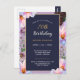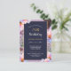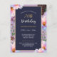 Tarjeta postal de invitación floral festiva para su fiesta de cumpleaños número 70 combina fondo azul oscuro crepuscular para texto fácilmente legible con flores frontales brillantes llenas de luz solar de primavera.