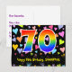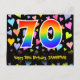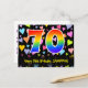 El frente de este diseño de tarjeta postal temática de cumpleaños, amoroso, colorido y divertido, presenta un gran número "70" con un patrón de gradiente de espectro de arcoíris. También presenta el mensaje "Feliz cumpleaños 70" y un nombre de destinatario personalizado. La parte delantera también tiene un vibrante y colorido patrón de fondo de corazones amorosos. La parte trasera presenta un mensaje de saludo de cumpleaños personalizado, o quizás podría estar en blanco si se desea escribir un mensaje a mano. Una tarjeta postal de cumpleaños personalizada como esta podría ser una forma divertida de enviar un mensaje para celebrar el cumpleaños número setenta de alguien. Tarjetas postales como esta también podrían usarse para invitar a invitados a una celebración de cumpleaños que se celebra para alguien que cumple 70 años. [~Z0000448]