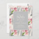 Hermosas y elegantes flores/tulipanes de color rosa rosa y hojas de salvia verde en una crema-blanca de 80 años invitando a las mujeres a una fiesta de cumpleaños.