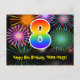 Postal Cumpleaños 8 – Patrón Divertido de Fuegos Artifici