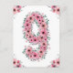 Postal Cumpleaños 9 Gran Número Flores Rosadas Niña Folia