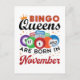 El diseño de cumpleaños de bingo es un regalo perfecto para mujeres con cumpleaños en noviembre que aman jugar bingo. El diseño dice: "Las reinas del bingo nacen en noviembre"