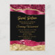 Esta elegante y glamurosa invitación de cumpleaños sweet sixteen presenta lágrimas de glamour doradas y rojo burgundy en un fondo negro. El texto combina fuentes manuscritas y modernas sin serif para un look clásico y sofisticado.