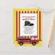 Tarjeta postal de invitación a cumpleaños de camión de bomberos / bombero con rayas rojas y amarillas